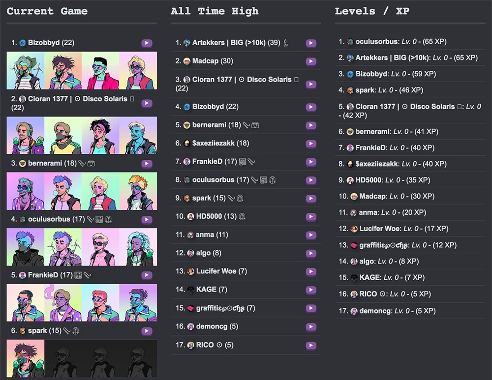 View a showcase of VIPs who have connected their wallets to Oculus Lounge and participated in games.